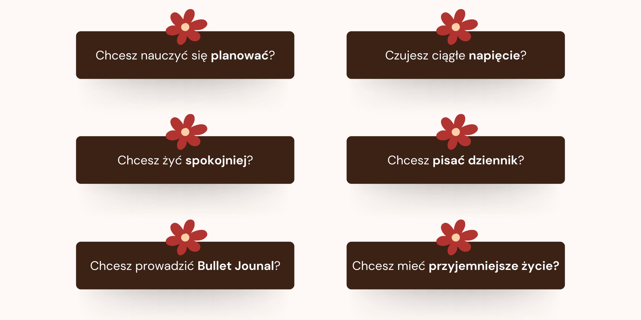→ Stworzyłam system wspierającego planowania, który wspiera w codzienności, zamiast dokładać niepotrzebnej presji. Najfajniejsze w nim jest to, że dopasowujesz go do własnej rzeczywistości (która może być trudna). Dzięki niemu uwolnisz czas na to, co dla Ciebie naprawdę ważne.