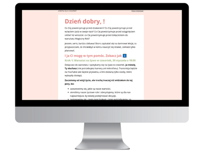 - stworzę treści sprzedażowe, które nie będą krzyczeć „kup, bo fajne!” – zamiast tego opowiem historię, podzielę się Twoją wiedzą i doświadczeniem, a odbiorcy klikną „kup teraz”, bo poczują, że to produkt/usługa dla nich.