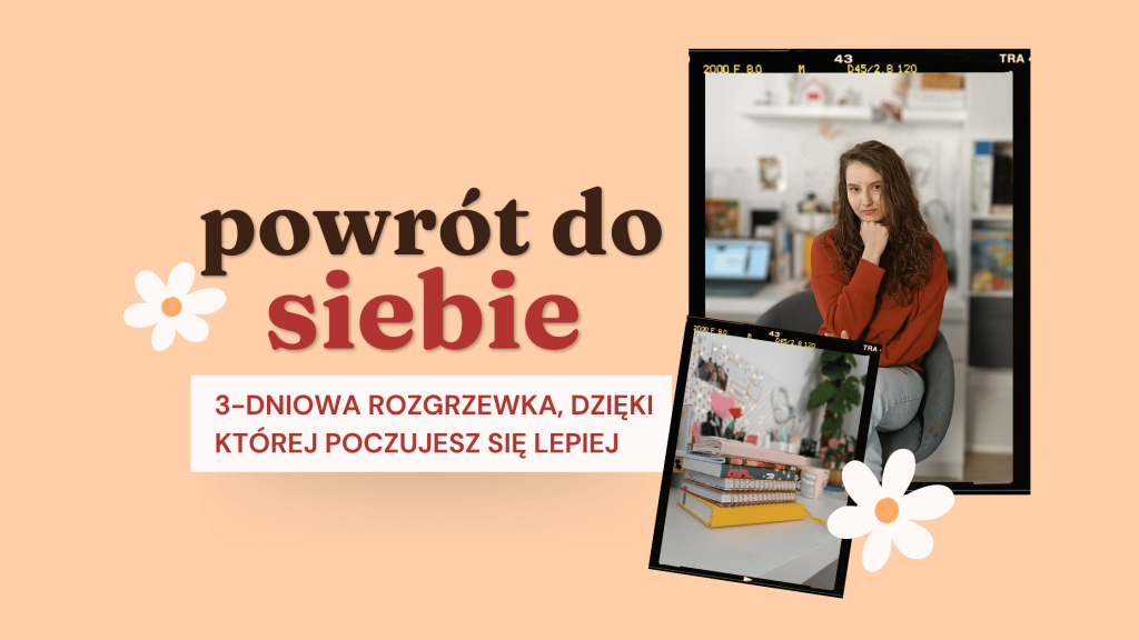 Czekają na Ciebie 3 darmowe dni rozgrzewki przed wyzwaniem 🌺 POWRÓT DO SIEBIE – zajmiemy się myślami, przez które nie możesz odpocząć, 3 małymi nawykami, dzięki którym będzie Ci lepiej oraz zadaniem-niespodzianką (no co? Nie mogę Ci wszystkiego zdradzić od razu!).