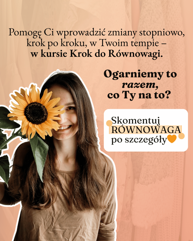 Psst. A jeśli Ty szukasz sposobu na stworzenie równowagi w życiu, zajrzyj do mojego kursu Krok do Równowagi (jeśli aktualnie drzwi do niego są zamknięte, możesz zapisać się na listę oczekujących i w międzyczasie zgarnąć kilka darmowych lekcji z praktycznymi wskazówkami).